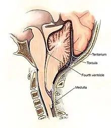 - Type III – Lillehjernen bryder ud af en åbning i den bageste del af kraniet.[2][3]