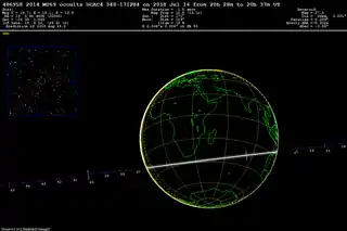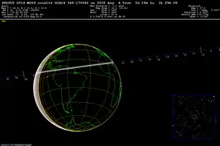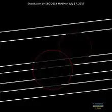 2014 MU69 blokkerede kortvarigt lyset fra en anonym stjerne, der ses imidten. Denne okkultation fandt sted den 17. juli 2017.