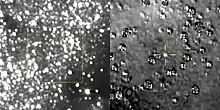 ![]() Arrokoth optaget den 1. januar 2019 fra en afstand på 137 000 km med New Horizons's højopløsningskamera Long-Range Reconnaissance Imager (LORRI). Billedet er farvelagt ved hjælp af optagelser lavet med et andet kamera i infrarødt, rødt og blåt lys. Objektet viser sig at være en kontaktbinær isdværg, formodentlig dannet ved et blødt sammenstød tidligt i Solsystemets historie [1] . Objektets udgøres af to flige. Den største, kaldet "Ultima", har en diameter på 19 km, den mindste "Thule", har en diameter på 14 km. | |