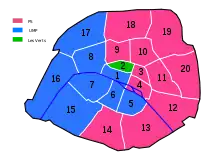 | Arrondissement | Arrondissementsborgmester | Parti | Bemærkninger | ||