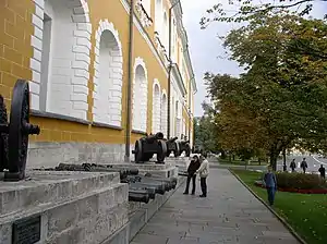 Krigsmateriel fra Napoleons hær er udstillet ved arsenalet i Kreml.
