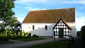 Et særkende ved kirken er dens våbenhus, der er bygget i bindingsværk – hvilket gør bygningen unik, da de fleste af denne type, er bygget om. Der findes derfor kun dette våbenhus samt våbenhuset i Hirsholmene Kirke. Våbenhuset blev bygget af den daværende ejer af Asdal Hovedgård, Ingeborg Skeel, da hun lavede en gennemgribende renovering af kirken i 1575-78.