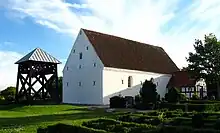 Kirken har intet tårn, men derimod en klokkestabel (det nuværende blev bygget i 2003), hvor der hænger to klokker, hvor den ældste er fra 1627.