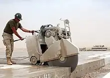 Asfaltskærer skærer asfalt og beton i en lufthavn under den amerikanske indsats i Afghanistan efter terrorangrebet den 11. september 2001 mod World Trade Center.