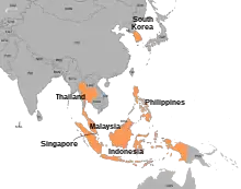 Blandt de lande, som blev værst ramt af krisen, var Indonesien, Sydkorea og Thailand. Men også lande som Hongkong, Malaysia, Laos og Filippinerne blev ramt. Kina, Indien, Taiwan og Singapore kom ud af krisen relativt uberørte.