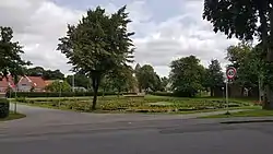 Gadekæret med kirken i baggrunden.  | |