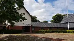 Ved højskolens indgangsparti er indsat en navnesten fra Flors højskole.