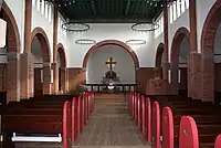 Kirkens inventar er det oprindelige bortset fra den murede prædikestol med evangelistsymboler, som i 1939 afløste en prædikestol af træ. Den smukke alterbordsforside er af maleren og keramikeren Karl Schrøder. Døbefonten i granit er fra kirkens opførelsesår. Kirken blev i 1999 gennemgribende istandsat under ledelse af Alan Havsteen-Mikkelsen.