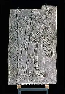 Denne artikel omhandler tre assyriske paladsrelieffer fra Nimrud oprindeligt opstillet i Assurnasirpal II’s (883-859 fvt.) nyopførte Nordvestpalads i Assyrien, der havde et meget nyskabende og kunstfærdigt udsmykningsprogram af delvis bemalede stenrelieffer. Over de assyriske relieffer fra paladset på cirka to meters højde var væggene og loftet dekoreret, og på gulvene lå der tykke, vævede tæpper. Reliefferne i paladset fremstillede kongen og hans land som evigt sejrende og triumferende i pragt og vælde. Budskabet var klart for de besøgende: Dette var verdens hovedstad, og assyrerkongen var verdens ubestridte leder. De tre relieffer er en del af Antiksamlingen på Nationalmuseet. Andre relieffer fra paladset findes på museer rundt om i hele verden især i England.