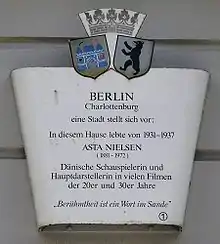 - Eva Tind: Asta Nielsen - et gavldigt, Valby Langgade 44b, 2500 Valby (2016)