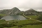 Helligdommen “Jomfru Maria af Covadonga” og bjergsøerne (Los Lagos), nær ved Cangas de Onís