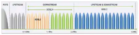 Som det ses på den illustration, som sammenligner af ADSL, ADSL2, ADSL2+ og VDSL2, består alle ADSL varianter af flere delkanaler.