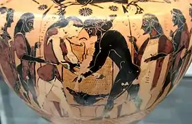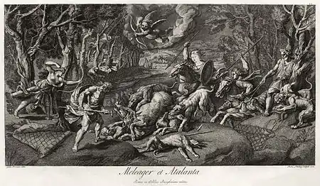 Atalantes færdigheder som bueskytte sikrede hende det første bytte under den kalydoniske vildsvine-jagt. Hendes bidrag til jagten blev dog skæmmet, da et skænderi om at give hende et trofæ for jagten resulterede i Meleagers og hans onklers død.