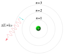 I 1913 foreslog den danske fysiker Niels Bohr en model, hvor elektronerne i et atom blev antaget at kredse om kernen, men kun kunne gøre det i et begrænset sæt af baner og kun kunne springe mellem disse baner som følge af bestemte ændringer af energi svarende til absorption eller stråling af en foton. [12] Denne kvantisering blev brugt til at forklare, hvorfor elektronernes kredsløb er stabile (givet at ladninger i acceleration, inklusive cirkulær bevægelse, normalt mister kinetisk energi, som udsendes som elektromagnetisk stråling, se synkrotronstråling), og hvorfor grundstoffer absorberer og udsender elektromagnetisk stråling i bestemte spektre. [13]