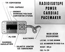 - 2005 by David Prutchi, Ph.D. Prutchi.com: Nuclear Pacemakers Citat: "...Nuclear batteries were introduced in the pacing industry around 1973 to prolong the longevity of the implanted device...However, by the mid-1970s, nuclear pacemakers were displaced by devices powered by lithium cells...The implant of nuclear-powered pacemakers stopped in the mid-1980s [Parsonnet et al., 1990]...", backup