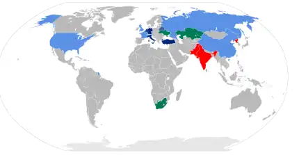 To lande - Indien og Pakistan - har ikke skrevet under på aftalen, men har senere udviklet atomvåben, og udført prøvesprængninger på egen hånd.