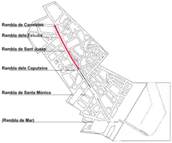 ![]() La Rambla, stedet for angrebet, billede fra 2011 | |