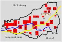 Auetal er beliggende mellem Süntel, Wesergebirge og Bückeberg.