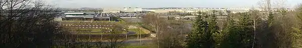 ![]() Udsigt over byen. Villakvarter nærmest og længst væk de store boligblokke, hvor urolighederne i 2005 fandt sted  | |||||