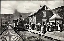Den første stationsbygning blev opført til åbningen i 1905. Den blev revet ned i 1941 og erstattet af en ny, der blev opført efter tegninger af NSB Arkitektkontor. Den blev senere solgt fra og brændte 30. marts 1999.