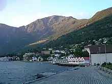 Udsigt over Aurlandsfjorden, Aurlandsvangen og Flåm
