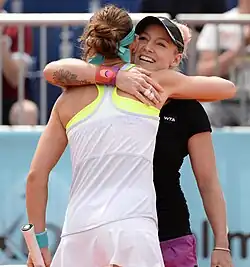 ![]() Bethanie Mattek-Sands og Lucie Šafářová vandt damedoublerækken (billedet er dog fra Madrid Open senere samme år) | |