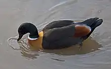 - "Chestnut-breasted shelduck". New Zealand Birds Online. Hentet 12. januar 2023.