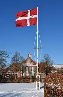 - Genforeningsflagstang opstillet i Vedels anlæg i 1920. (Skænket af købmand Jens Andersen, Ribe til Sønderjydsk Forening)