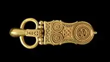 Et bæltespænde kan være suppleret med rembeslag og remendebeslag i samme stil.