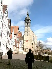 Markedspladsen i Böblingen med bykirken i baggrunden