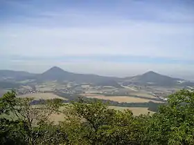![]() Milešovka (til venstre) og Kletečná, set fra Lovoš | |