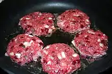 Ingredienserne minder om tatar, der imidlertid ikke steges, eller pariserbøf, hvor det kun er kødet, der steges til en hakkebøf og serveres med det øvrige som tilbehør.