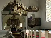 Byens romanske kirke er fra 1200-tallet. Kirken er bygget af mursten og tækket med skifer. På alteret står årstallet 1649. Kirken var indviet til den hellige Ursula.