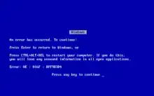 Når fejlen opstår i Windows, er det tit en kritisk fejl i operativsystemet, og fænomenet er mest kendt fra Windows 95, 98 og Me.