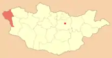 Bajan-Ölgijs beliggenhed i Mongoliet