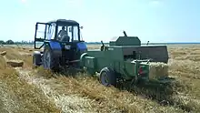 Inden for landbruget er en ballepresser en maskine man tilkobler en traktor. Ved hjælp af kraftoverførsel fra traktorens kraftudtag drives en mængde mekaniske dele, der automatisk samler løst eller halm op fra marken, presser det hårdt sammen i baller, binder snore om ballerne og derefter skubber dem ud.