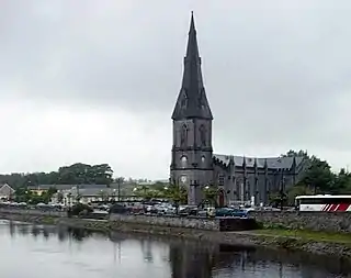 St. Muredach's Cathedral fra 1827 blev færdigbygget inden den store hungersnød i 1845 og tårnet i 1855.