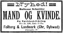- Mand og Kvinde. En Nutidsskildring. Feilberg & Landmark (Chr. Dybwad). Christiania, 1897. 212 s.