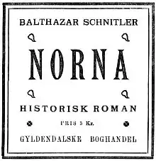 - Norna. Historisk Roman ifra Harald Haarfagers tid. Gyldendalske Boghandels Forlag. Kjøbenhavn, 1900. 246 s.