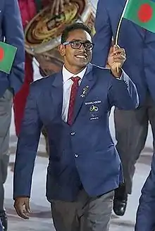 Svømmeren Mohammad Mahfizur Rahman var flagbærer for Bangladesh ved åbningsceremonien under sommer-OL 2012 (her fotograferet under indmarchen ved sommer-OL 2016).