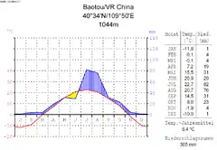 ![]() Baotou Baotous beliggenhed i Kina 40°39′22″N 109°50′04″Ø | |