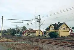 Stationsbygningen, der er i gulmalet træ, blev opført i 1881 efter tegninger af Balthazar Lange. Den er nu solgt fra og flyttet væk fra sporet.