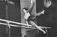 Ursula Pagel ved de østtyske gymnastikmesterskaber i 1950