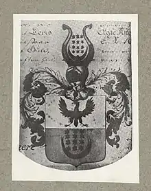 En ældre beskrivelse angiver skjoldet som: Skjoldet firdelt af gult, hvori en sort ørn med rødt næb og røde kløer, og rødt, hvori tolv hvide stjerner over en hvid halvmåne.