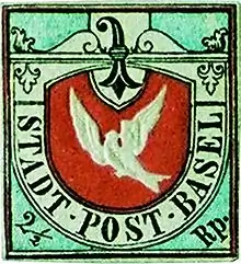 På denne tid fandtes der endnu ikke noget egentligt postvæsen for hele Schweiz. Dette kom først i 1849. Frimærket regnes derfor som et lokalt "kantonalmærke". Frimærket blev tegnet af Melchior Berri og viser en præget hvid due, som bærer et brev i næbbet, omgivet af teksten "STADT POST BASEL". Frimærket blev trykt i farverne sort, karmosinrød og blå og var verdens første trefarvede frimærke. Frimærket var gyldigt frem til 30. september 1854 og blev trykt i et oplag på 41.480.