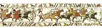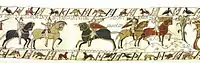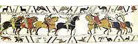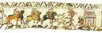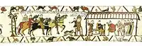 | 2. | UBI HAROLD DUX ANGLORUM ET SUI MILITES EQUITANT AD BOSHAM ECCLESIA[M] | Hvor Harald, englændernes jarl og hans følge rider til Bosham kirke.[7] | ![]() |