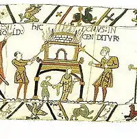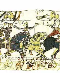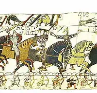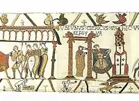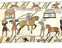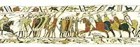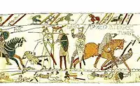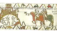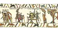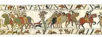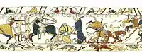 | HIC FRANCI PUGNANT ET CECIDERUNT QUI ERANT CUM HAROLDO | Her kæmper franskmændene og dræber dem som var med Harald | ||