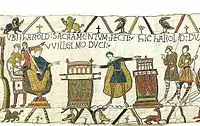 | 23. | UBI HAROLD SACRAMENTUM FECIT WILLELMO DUCI | hvor Harald sværger troskabsed til hertug Vilhelm | ![]() |