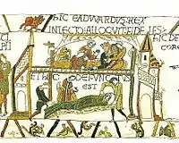 | 26. | HIC PORTATUR CORPUS EADWARDI REGIS AD ECCLESIAM S[AN]C[T]I PETRI AP[OSTO]LI | Her bæres kong Edvard til St. Peter Apostelens kirke[16] | ![]() |