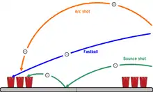 Et hold kan foretage et "bounce" ved at kaste bolden ned i bordet, således at den hopper op og rammer ned i en kop. Ved bounces, gælder specielle regler, da et sådant skud tæller for to kopper. Til gengæld må modstanderholdet slå bolden væk, så snart den har hoppet på bordet. Et sådant skud er dermed mest optimalt, når modstanderholdet er uopmærksomt.